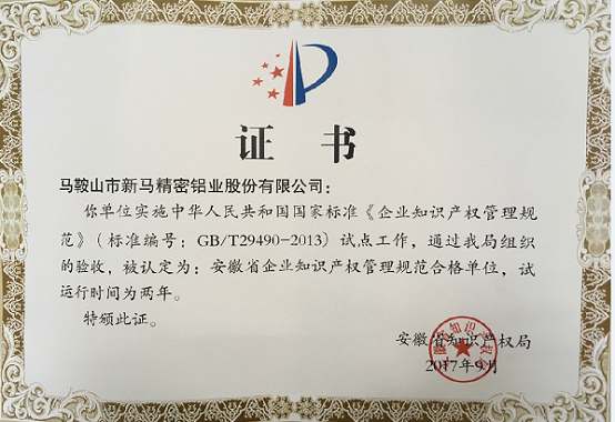 安徽省企業(yè)知識(shí)產(chǎn)權(quán)管理規(guī)范合格單位